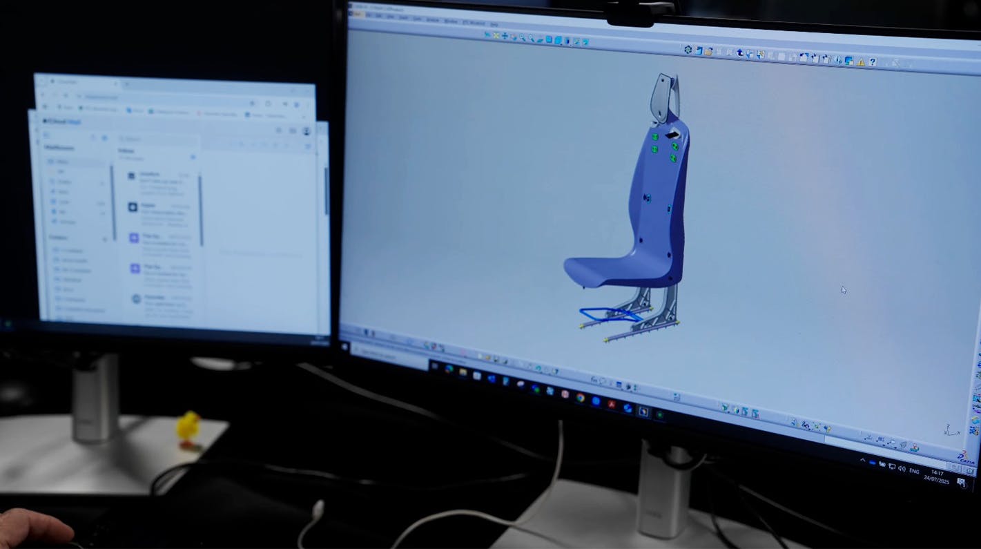 Nearby, the crashworthy crew seat design has been finalised after extensive comfort and trim development. Using advanced digital crash test dummy simulations, we have optimised the structure to reduce spine loads, eliminate occupant "submarining" under the seatbelt, and meet all certification requirements on cost and weight.